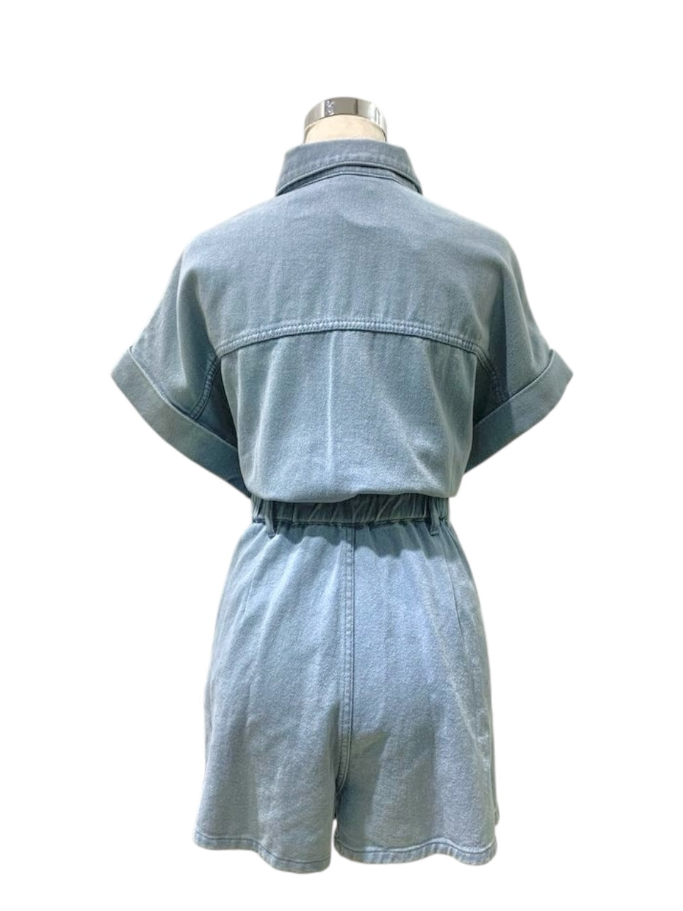 Confeccionada en jean de alta calidad, esta braga short ofrece durabilidad y comodidad. El diseño de cuello tipo camisa y mangas anchas hasta el codo aporta un toque de originalidad y estilo utilitario. Los botones frontales permiten ajustar la abertura según la preferencia, mientras que la silueta short realza la figura y permite lucir las piernas con elegancia.