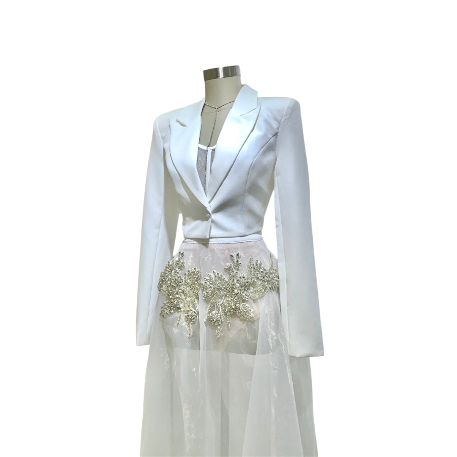 Esta es tu oportunidad de adquirir una prenda especial y encantadora que te hará sentir segura y deslumbrante en nuestra ciudad. ¡Aprovecha nuestra oferta exclusiva y envuélvete en el resplandor y la elegancia del vestido blanco 'Destello Lunar' con piedras plateadas de Be Fashion NY!